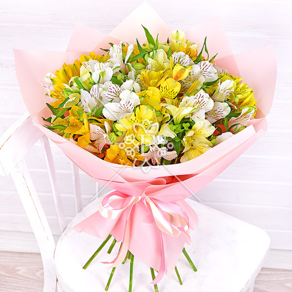 Легкость, нежность и отличное настроение Вы можете вручить дорогому человеку, выбрав в качестве подарка букет из невесомых и воздушных альстромерий!